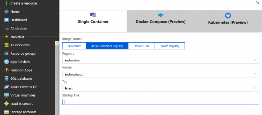 Configure container altında ise Single Container ile henüz preview aşamasında bulunan Docker Compose ve Kubernetes seçenekleri bulunuyor. Bunların altında ise aşağıdaki seçecekler yer alıyor.