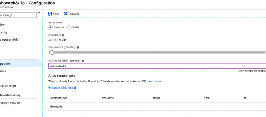 Ayarları kaydettikten sonra Resim-5‘teki gibi DNS name yanında <dns_label>.<location>.cloudapp.azure.com formatındaki DNS adresimizi görebilirsiniz.