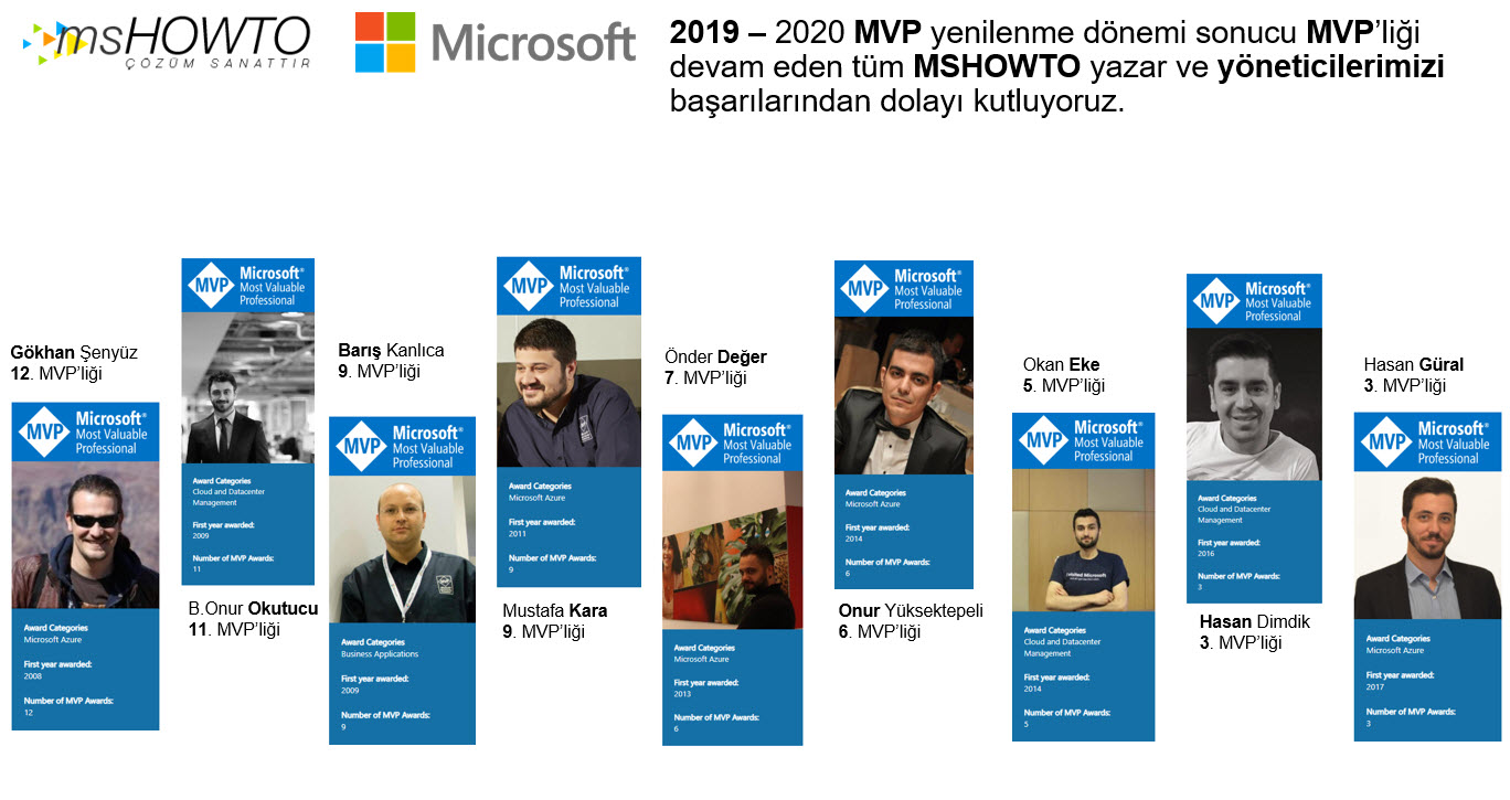 2019 – 2020 MVP yenilenme dönemi sonucu MVP’liği devam eden tüm MSHOWTO yazar,yönetici ve onursal üyelerimizi başarılarından dolayı kutluyoruz.