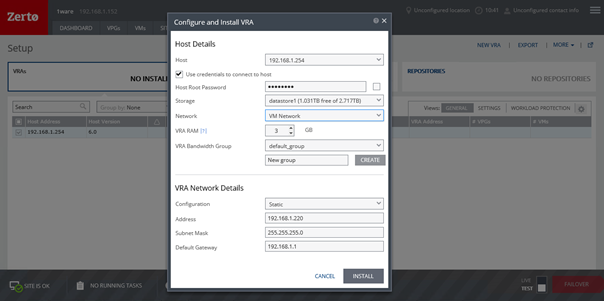 Site ekledikten sonra ikinci adıma geçebiliriz. Setup > New Vra diyoruz ve Zerto’nun agent deploy edeceği hoşta ait bilgileri ve bu agentlara ait ip adreslerini giriyoruz. Ok dediğimizde bizi aşağıdaki gibi ekran karşılamalı. Aksi takdirde vra tarafında sorun olursa replikasyon çalışmaz